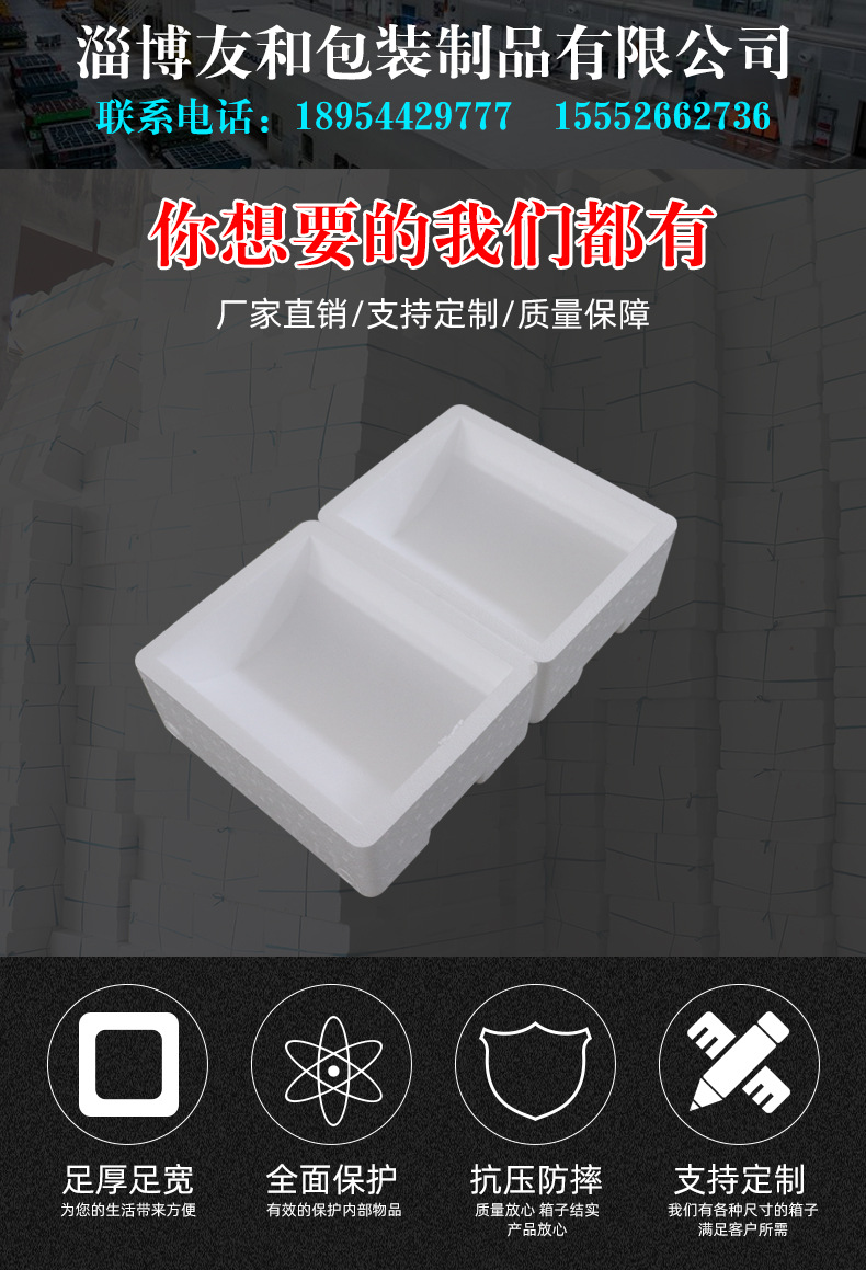 ????淄博友和包裝制品有限公司是專業(yè)的山東泡沫包裝箱加工廠家,本廠主要產(chǎn)品有:泡沫包裝箱,泡沫保鮮箱,水果蔬菜泡沫包裝箱,水果蔬菜泡沫保鮮箱,瓷磚泡沫包裝箱等,產(chǎn)品暢銷全國,深受用戶好評。泡沫包裝定做可以聯(lián)系我們網(wǎng)站 http://www.bjswzx.cn/ 上電話,我們會(huì)第一時(shí)間跟您聯(lián)系。